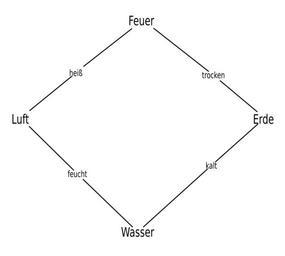 Keywords: Vier-elemente-theorie.svg This sketch shows the connections of the four elements Fire Earth Water and Air with their main attributes This is after Aristotle created in Inkscape 2006-05-30 Carsten Niehaus Four elements