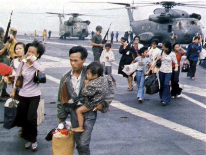 Keywords: Vietnamese refugees arrive on USS Hancock (CVA-19) in 1975.jpg Vietnamese refugees debarking from Sikorsky CH-53 Sea Stallions of Heavy Marine Helicopter Squadron HMH-463 aboard the U S Navy aircraft carrier USS Hancock CVA-19 in April 1975 Hancock embarked HMH-463 to take part in operations Eagle Pull and Frequent Wind Most of her regular air group had been flown to Subic Bay Philippines U S Navy photo http //www navysite de/cruisebooks/cv19-75/029 htm from the http //www navysite de/cruisebooks/cv19-75/index_004 htm USS Hancock CVA-19 1975 cruise book available at http //navysite de/cruisebooks/index html Navysite de 1975-04 USN PD-USGov-Military-Navy Aboard USS Hancock CV-19 Operation Frequent Wind Marine Heavy Helicopter Squadron 463 Sikorsky CH-53A/D Sea Stallion U S Marine Corps |