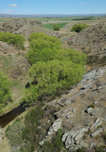 Keywords: View down from Poolburn Viaduct.jpg View down from Poolburn Viaduct Otago Central Rail Trail Own 2013-10-03 Pseudopanax wikipedia en 45 3 47 36 S 169 44 42 02 E Views from bridges Streams in New Zealand Poolburn Gorge