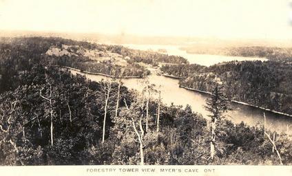 | Keywords: forestry tower forestrytower fire tower firetower myer's cave myerscave myer cave myercave forestry view forest fire forestfire cloyne marble lake marblelake mississagagon lake mississagagonlake kashwakamak lake kashwakamaklake gull lake gulllake outdoor landscape John Bolton researched the forestry towers in the Cloyne and area and submitted an article for print in the November 2007, Fall edition Pioneer Times Newsletter . The Newsletter is can be viewed online at www.cloynepioneermuseum.ca Newsletter. There is also a photo (circa 1955) of the tower in the article. This is an excerpt from John's article: 'Myer’s Cave Tower is(was) located on what is known as Tower Road just east of Myer’s Cave on North Frontenac Road 506. This tower was an important one in the system, overlooking Marble, Mississagagon, Kashwakamak and Gull Lakes with many resorts and camps in the area. Ezra Wheeler, Harvey Spencer, Jim Perry and Oscar Lemke manned this tower over the years. Jim was probably the best known; he would welcome guests to come up to admire the view and explain the working of the system. After a long day, Jim would walk to Myer’s Cave and stay overnight with his brother George and sister-in-law Beatrice Perry. In the morning, he would go to Myer’s Cave Lodge, start the kitchen wood stove for cooking the breakfast for the many tourists. Ellery Thompson of Kaladar Northern Telephone told me that the phone batteries had to be changed at this tower on a regular basis. If the fire watch was slow, Jim would call friends and visit so the batteries would run down quickly.' John Bolton researched the forestry towers in the Cloyne and area and submitted an article for print in the November 2007, Fall edition Pioneer Times Newsletter . The Newsletter is can be viewed online at www.cloynepioneermuseum.ca Newsletter. There is also a photo (circa 1955) of the tower in the article. This is an excerpt from John's article: 'Myer’s Cave Tower is(was) located on what is known as Tower Road just east of Myer’s Cave on North Frontenac Road 506. This tower was an important one in the system, overlooking Marble, Mississagagon, Kashwakamak and Gull Lakes with many resorts and camps in the area. Ezra Wheeler, Harvey Spencer, Jim Perry and Oscar Lemke manned this tower over the years. Jim was probably the best known; he would welcome guests to come up to admire the view and explain the working of the system. After a long day, Jim would walk to Myer’s Cave and stay overnight with his brother George and sister-in-law Beatrice Perry. In the morning, he would go to Myer’s Cave Lodge, start the kitchen wood stove for cooking the breakfast for the many tourists. Ellery Thompson of Kaladar Northern Telephone told me that the phone batteries had to be changed at this tower on a regular basis. If the fire watch was slow, Jim would call friends and visit so the batteries would run down quickly.' |