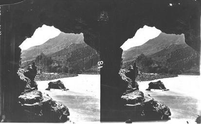 Keywords: stereoscopic stereophotography stereophotographs historical usgs history geology mapping black and white blackandwhite bnw stereograph blackandwhite monochrome surreal black and white View from small cave in Split Mountain Canyon, Green River. Dinosaur National Monument. Moffat County, Colorado. July 1871 View from small cave in Split Mountain Canyon, Green River. Dinosaur National Monument. Moffat County, Colorado. July 1871