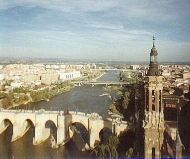 | Keywords: View from top of El Pilar.jpg Top of the highest tower of the Basilica of Nuestra Señora del Pilar in Saragossa 2000 View over the river Ebro and the city Photograph taken by User Chamaeleon 2000 Photograph taken by User Chamaeleon Chameleon Bas C3 ADlica_de_Nuestra_Se C3 B1ora_del_Pilar_de_Zaragoza Church towers in the province of Zaragoza Cityscapes Ebro river in Zaragoza Bridges over the Ebro River Bridges in Zaragoza Stone arch bridges in Spain | ||||