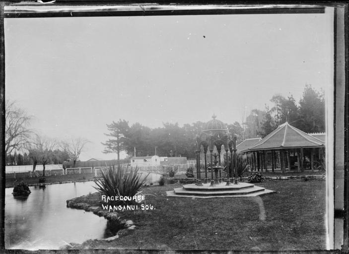 | Keywords: blackandwhite monochrome photo border outdoor black and white View of the Freeman R Jackson Memorial fountain with a lake on the left and pavilions on the right. Photograph taken by William Archer Price. Inscriptions: Inscribed - Photographer's title on negative -bottom left: Racecourse. Wanganui [No.] 506. Quantity: 1 b&w original negative(s). Physical Description: Dry plate glass negative View of the gardens behind the grandstand at the Wanganui Racecourse, including the Freeman R Jackson memorial. Price, William Archer, 1866-1948 :Collection of post card negatives. Ref: 1/2-001064-G. Alexander Turnbull Library, Wellington, New Zealand. natlib.govt.nz/records/22793436 View of the Freeman R Jackson Memorial fountain with a lake on the left and pavilions on the right. Photograph taken by William Archer Price. Inscriptions: Inscribed - Photographer's title on negative -bottom left: Racecourse. Wanganui [No.] 506. Quantity: 1 b&w original negative(s). Physical Description: Dry plate glass negative View of the gardens behind the grandstand at the Wanganui Racecourse, including the Freeman R Jackson memorial. Price, William Archer, 1866-1948 :Collection of post card negatives. Ref: 1/2-001064-G. Alexander Turnbull Library, Wellington, New Zealand. natlib.govt.nz/records/22793436 |