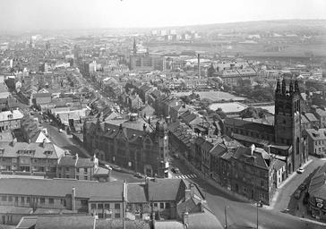 | Keywords: newcastle upon tyne newcastleupontyne 1960s westgate road westgateroad corporation street corporationstreet blandford house blandfordhouse summerhill park summerhillpark st matthew's church newcastle upon tyne stmatthewschurchnewcastleupontyne summerhill street summerhillstreet big lamp biglamp westgate hill westgatehill black and white photograph blackandwhitephotograph landscape view flats august 1963 august1963 impressive striking stunning turners ltd turnersltd businesses premises heritage buildings heritagebuildings buildings aerial street north east of england northeastofengland twentieth century twentiethcentury pedestrian crossing pavement shadow light road roof wall window glass chimney pole wire vehicle industry abstract social sky church vegetation trees cylinder door fence land block development horizon beautiful construction trolley bus trolleybus trolley glimpse social life sociallife blackandwhite monochrome outdoor black and white View of Newcastle upon Tyne from Westgate Road flats, August 1963 (TWAM ref. DT.TUR/2/31921A). Tyne & Wear Archives presents a series of images taken by the Newcastle-based photographers Turners Ltd. The firm had an excellent reputation and was regularly commissioned by local businesses to take photographs of their products and their premises. Turners also sometimes took aerial and street views on their own account and many of those images have survived, giving us a fascinating glimpse of life in the North East of England in the second half of the Twentieth Century. (Copyright) We're happy for you to share these digital images within the spirit of The Commons. Please cite 'Tyne & Wear Archives & Museums' when reusing. Certain restrictions on high quality reproductions and commercial use of the original physical version apply though; if you're unsure please email archives@twmuseums.org.uk View of Newcastle upon Tyne from Westgate Road flats, August 1963 (TWAM ref. DT.TUR/2/31921A). Tyne & Wear Archives presents a series of images taken by the Newcastle-based photographers Turners Ltd. The firm had an excellent reputation and was regularly commissioned by local businesses to take photographs of their products and their premises. Turners also sometimes took aerial and street views on their own account and many of those images have survived, giving us a fascinating glimpse of life in the North East of England in the second half of the Twentieth Century. (Copyright) We're happy for you to share these digital images within the spirit of The Commons. Please cite 'Tyne & Wear Archives & Museums' when reusing. Certain restrictions on high quality reproductions and commercial use of the original physical version apply though; if you're unsure please email archives@twmuseums.org.uk |