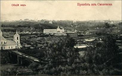 | Keywords: View on Rachevka.png en View of the Settlement of this Rachevka Zadneprovsky district of Smolensk ru Вид на слободу Рачевка из нынешнего Заднеп овского айона Смоленска О игинальная отк ытка е установлены before 1917 года PD-RusEmpire 20th-century postcards Postcards of Smolensk |