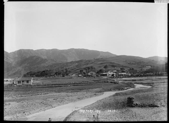 Keywords: blackandwhite monochrome photo border outdoor black and white Tokomaru Bay settlement, possibly photographed by Oates Bros of Tokomaru Bay between 1900-1930. View taken from the waterfront area looking west along a stream towards buildings and houses (one on right with flagpole may be the school), and hills beyond. Inscriptions: Inscribed - Photographer's title on negative -bottom centre: Tokomaru Bay. O.B.110. Quantity: 1 b&w original negative(s). Physical Description: Dry plate glass negative 4.75 x 6.5 inches View of settlement at Tokomaru Bay looking west. Price, William Archer, 1866-1948 :Collection of post card negatives. Ref: 1/2-001215-G. Alexander Turnbull Library, Wellington, New Zealand. natlib.govt.nz/records/22674272 Tokomaru Bay settlement, possibly photographed by Oates Bros of Tokomaru Bay between 1900-1930. View taken from the waterfront area looking west along a stream towards buildings and houses (one on right with flagpole may be the school), and hills beyond. Inscriptions: Inscribed - Photographer's title on negative -bottom centre: Tokomaru Bay. O.B.110. Quantity: 1 b&w original negative(s). Physical Description: Dry plate glass negative 4.75 x 6.5 inches View of settlement at Tokomaru Bay looking west. Price, William Archer, 1866-1948 :Collection of post card negatives. Ref: 1/2-001215-G. Alexander Turnbull Library, Wellington, New Zealand. natlib.govt.nz/records/22674272 |