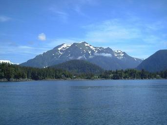 Keywords: view travel alaska mountains lake water sea forest blue