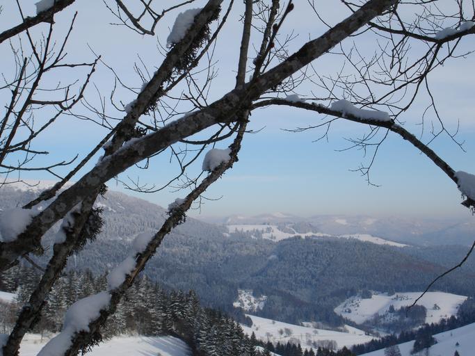 Keywords: view winter nature panorama sky blue mountains snow vision outlook wintry fog trees black forest high blue