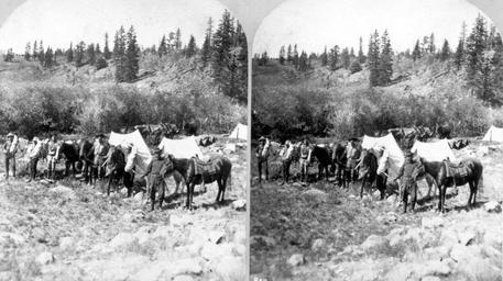 Keywords: stereoscopic stereophotography stereophotographs historical usgs history geology mapping black and white blackandwhite bnw stereograph blackandwhite monochrome outdoor snow black and white Views among the Rocky Mountains of Colorado. Camp scene. The 1874 Photographic Division on the way to Los Pinos and Mesa Verde. Left to right: Smart, Anthony, Mitchell, Whan, Ernest, Ingersoll, and Charley, the cook. Dolly, the mule, stands between Charley and Ingersoll. Colorado. 1874. (Stereoscopic view similar to Jackson, W.H. 359) Views among the Rocky Mountains of Colorado. Camp scene. The 1874 Photographic Division on the way to Los Pinos and Mesa Verde. Left to right: Smart, Anthony, Mitchell, Whan, Ernest, Ingersoll, and Charley, the cook. Dolly, the mule, stands between Charley and Ingersoll. Colorado. 1874. (Stereoscopic view similar to Jackson, W.H. 359) |
