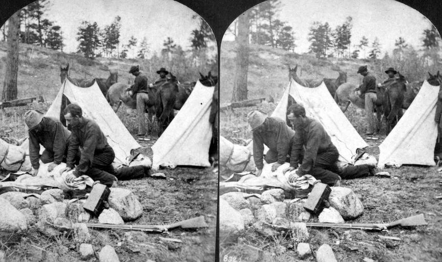 | Keywords: stereoscopic stereophotography stereophotographs historical usgs history geology mapping black and white blackandwhite bnw stereograph blackandwhite monochrome outdoor black and white Views among the Rocky Mountains of Colorado. Camp scene. Holmes and Chittenden rolling up bedding. Colorado. 1874. (Stereoscopic view similar to Jackson, W.H. 1292) Views among the Rocky Mountains of Colorado. Camp scene. Holmes and Chittenden rolling up bedding. Colorado. 1874. (Stereoscopic view similar to Jackson, W.H. 1292) |