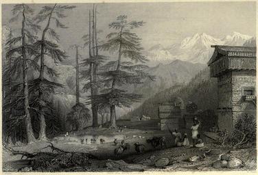 Keywords: Views in India 0129.png en Village of Koghera Deodar forest 1838 https //archive org/details/viewsinindiachie00whitrich George Francis White other versions PD-old-70-1923 Views in India chiefly among the Himalaya Mountains Uploaded with UploadWizard |