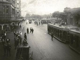| Keywords: archives state records nsw staterecordsnsw newsouthwales blackandwhite sydney trams people streets buildings railway square railwaysquare pedestrians commuters tram street pitt monochrome outdoor black and white Title: Pitt Street, Sydney (traffic turning right into Eddy Avenue) Dated: 1926 Digital ID: 17420_a014_a0140001208 Rights: www.records.nsw.gov.au/about-us/rights-and-permissions We'd love to hear from you if you use our photos. Many other photos in our collection are available to view and browse on our website using Photo Investigator. Title: Pitt Street, Sydney (traffic turning right into Eddy Avenue) Dated: 1926 Digital ID: 17420_a014_a0140001208 Rights: www.records.nsw.gov.au/about-us/rights-and-permissions We'd love to hear from you if you use our photos. Many other photos in our collection are available to view and browse on our website using Photo Investigator. |