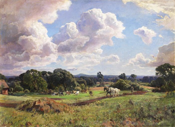 Keywords: Viggo Pedersen - The plough team (1917).jpg Viggo Pedersen 1854 “1926 1917 Technique oil canvas cm 100 5 136 5 object history credit line exhibition history 1917 Vigo Pedersen ~ lower right signature / date accession number http //www bonhams com/auctions/21492/lot/121/ Bonhams London 22 Jan 2014 lot 121 PD-old-auto-1923 1926 DEFAULTSORT Pedersen Viggo; Landscape 1917; Bonhams 2014 Viggo Pedersen painter Landscape paintings of Denmark 1910s paintings Images from Bonhams |