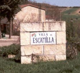Keywords: Villa de Escamilla 1.jpg El nombre de la villa y su escudo de armas a la entrada de la población Autor Fev Fecha 15 de mayo de 2005 2006-10-11 own assumed Fev Escamilla