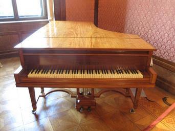 | Keywords: Villa Huegel Essen 30.jpg Flügel aus dem Jahr 1905 Zitronenholzfurnier mit Einlegearbeiten und Bemalungen Der Flügel im Empire-Stil wurde um 1905 von dem Hof-Piano-Fabrikanten Rud Ibach Sohn aus Barmen für das Musikzimmer der Familie Krupp in Villa Hügel angefertigt Den Entwurf für das Instrumentengehäuse lieferte die Mainzer Hofmöbelfabrik A Bembé In drei gemalten ovalen Medaillons sind Allegorien der Musik dargestellt Frauengestalten in fließenden Gewändern tragen als Attribute der Musik verschiedene Instrumente Rechte Seite Frauengestalt mit Tamburin und geflügelter Putto mit Laute Rückseite Frauengestalt mit Lyra und Schwan Linke Seite Frauengestalt mit Posaune und Putto mit Triangel Der Flügel wurde der Alfried Krupp von Bohlen und Halbach-Stiftung im Jahre 1997 von den letzten Eigentümern Ilse und Raimund Kluber Darmstadt übereignet Die Stiftung ermöglichte 1998 die umfassende Restaurierung des Instrumentes own 2011-03-02 11 26 50 Gryffindor Interior of the Villa Hügel Rud Ibach Sohn pianos Bembé |