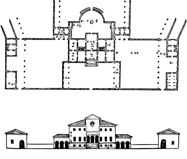 Keywords: VillaGodiFromQuattroLibri.svg Villa Godi by Andrea Palladio Woodcut from I Quattro Libri dell'Architettura Palladio From the book I Quattro Libri dell'Architettura ~ 1570 Andrea Palladio pd-old PD-old Plans of Villa Godi 01