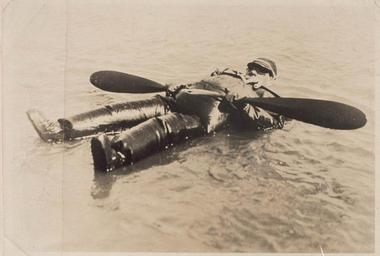 From the collection of the State Library of New South Wales <a href="http://www.sl.nsw.gov.au" rel="nofollow">www.sl.nsw.gov.au</a> sepia floating sanfranciscobay propeller aviator stuntman balloonist rubbersuit captaintaylor vptaylor vincentpatricktaylor |