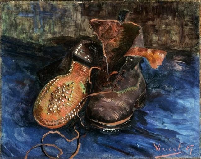 Keywords: Vincent van Gogh - A pair of shoes (1887).jpg Artwork Creator Vincent van Gogh Paris early 1887 oil canvas cm 34 41 5 Institution Baltimore Museum of Art accession number 1950 302 http //www vangoghgallery com/catalog/Painting/379/Pair 20of 20Shoes 20A html vangoghgallery com object history credit line The Cone Collection formed by Dr Claribel Cone and Miss Etta Cone of Baltimore Maryland exhibition history Vincent 87 ~ lower right signature and date Van Gogh catalogues 333 1236 http //www artbma org/educators/atg/pdf/atg_12-07 pdf The Baltimore Museum of Art PD-art-100 DEFAULTSORT Van Gogh 1887 A pair of shoes Baltimore Museum of Art A pair of shoes by Vincent van Gogh Paris 1887 |