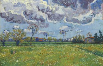 Keywords: Vincent van Gogh - Paysage sous un ciel mouvementé.jpg Paysage sous un ciel mouvementé Landscape under a Stormy Sky Arles mid date 1889 04 Oil on canvas cm 60 5 73 7 http //www sothebys com/en/auctions/ecatalogue/2015/impressionist-modern-art-evening-sale-n09415/lot 14 html Sotheby's info http //www sothebys com/content/dam/stb/lots/N09/N09415/366N09415_6G774 jpg Sotheby's image Creator Vincent van Gogh PD-old-auto-1923 1890 Van Gogh catalogues 575 1422 <br/> Offered for sale ex Louis Evelyn Franck collection Sotheby's New York 5 November 2015 realized 54 010 000 <sub> Hammer Price with Buyer's Premium </sub> Both de la Faille and Hulsker date the painting as done in spring 1888 i e shortly after van Gogh arrived in Arles Ronald Pickvance however opted for spring 1889 shortly before leaving for the Saint Rémy asylum including it amongst the first batch of paintings he sent his brother Theo from Saint Rémy in July 1889 after returning to Arles to collect his spring paintings that year Ronald Pickvance Van Gogh in Saint-Rémy and Auvers New York 1986 p 293 illustrated p 295 other versions <gallery> File Paysage sous un ciel mouvementé by Vincent van Gogh jpg sRGB colour space ex Adobe Photoshop </gallery> DEFAULTSORT Van Gogh; 1889-04 Landscape under a Stormy Sky; Sotheby's 2015 Landscape paintings by Vincent van Gogh Arles 1889 Uploaded with UploadWizard Images from Sotheby's |