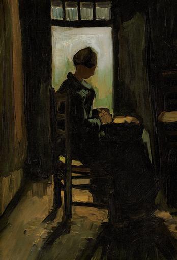 Keywords: Vincent van Gogh - Peasant woman seated before an open door, peeling potatoes (1885).jpg Artwork Creator Vincent van Gogh Nuenen 1885 03 oil canvas cradled panel cm 36 5 25 accession number http //www vangoghgallery com/catalog/Painting/413/Peasant 20Woman 20Seated 20before 20an 20Open 20Door 20Peeling 20Potatoes html vangoghgallery com object history credit line exhibition history Van Gogh catalogues 73 717 2010 11 03 PD-old-100-1923 1890 DEFAULTSORT Van Gogh; 1885-03; Peasant woman seated before an open door 1885 paintings by Vincent van Gogh Paintings of women 1880s portrait paintings Potato peeling in art |