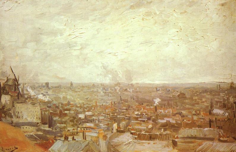 Keywords: Vincent Willem van Gogh 010.jpg Artwork Creator Vincent van Gogh Paris late other date summer 1886 oil canvas cm 38 5 61 5 Institution Kunstmuseum Basel accession number object history credit line Van Gogh catalogues 262 1102 http //www vangoghgallery com/catalog/Painting/701/View 20of 20Paris 20from 20Montmartre html vangoghgallery com Yorck PD-old-100-1923 DEFAULTSORT Van Gogh 1886-09 Paris from Montmartre F_262 JH_1102 View of Paris from Montmartre by Vincent van Gogh |