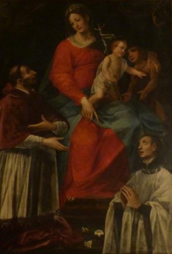 Keywords: Vincenzo Rustici - Madonna with St Carolus Borromeus and St Aloysius Gonzaga.jpg Artwork Creator Vincenzo Rustici ~ 1620 Oil on canvas Oratorio della Civetta Siena place of discovery object history exhibition history credit line accession number place of creation http //www ecomuseosiena org/mappa/patrimonio-culturale-materiale/alcuni-beni-delloratorio-della-civetta PD-old-70 Vincenzo Rustici Madonna and Child with saints |