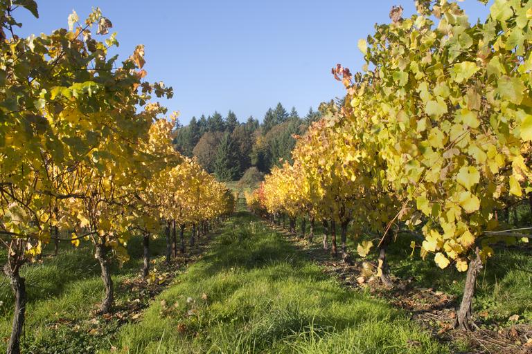 Keywords: vineyard wine oregon vine harvest grapes agriculture fruit winery rural green valley farm outdoor leaves plant grow landscape autumn grapevine viticulture growth