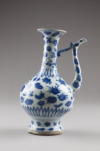 | Keywords: Vinkanna i orientalisk stil producerad för den persiska marknaden, gjord i Kina på 1620-talet - Hallwylska museet - 95601.tif LSH artwork sv VINKANNA I orientalisk stil producerad för den persiska marknaden Bukig på hög fot samt med hög smal hals utsvängd mynning och S-formad rundstavig pip uptill stödd mot halsen medels ett S-formad rundstavigt stöd Över hela kannan ett glest mönster av otydliga föremål som svastikor wan solfjädrar snäckor blommor frukt och blad Underglasyrmålning i blå-vitt med märken efter blåsor samt ojämnheter Kring foten och mynningskanten flagnad; på fotens stödyta rester efter sanden Formen något skev <br/>Svastikan Wan symboliserar 10 000 goodlucks <br/>Inköpt av Johanna Kempe hos konsthandlare H Bukowski år 1890 <br/>WINE PITCHER late Ming-dynasty Tianqi 1620-1628 original caption Vinkanna i orientalisk stil producerad för den persiska marknaden gjord i Kina på 1620-talet <br/> Nyckelord vinkanna kanna keramik Kinesiskt porslin Kanna Föremålsbild decade 1620 size cm 7 6 mynning size cm 9 8 fot size cm 14 2 size cm 26 7 HWY place of origin CN original filename hm_dig12105 15141 inventory number HWY XLVIII K IV A a b 01 95601 CC-BY-SA Jens Mohr Porcelain of China Porcelain pitchers Chinese ceramics in the Hallwyl Museum Sweden Jens Mohr Media contributed by LSH dim-with multiple size templates Media contributed by LSH unmatched keyword Media contributed by LSH 2014-11 |
