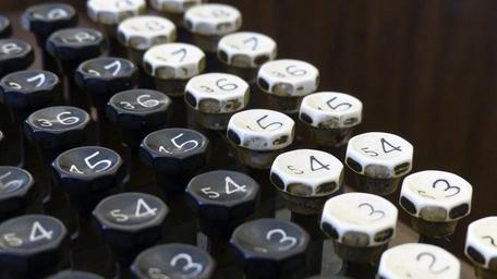 Keywords: vintage adding machine retro business bookkeeping old black and white buttons numbers add math register cash tally closeup