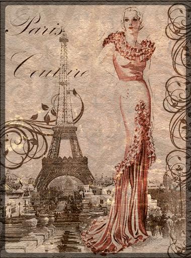 Keywords: vintage collage art woman beautiful fashion couture paris eiffel pink dress evening elegant twenties 1920's design decoupage digital collage art swirl french france europe artistic glamorous lovely memories scrapbook