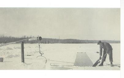 Keywords: vintage ice frozen lake cold winter outdoor cutting ice 1930's snow