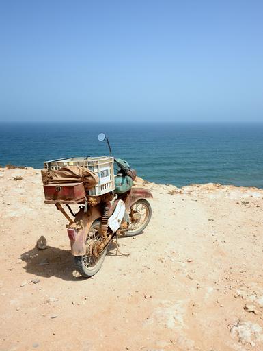 Keywords: vintage motorcycle moped beach sea morocco former retro ocean rust chrome