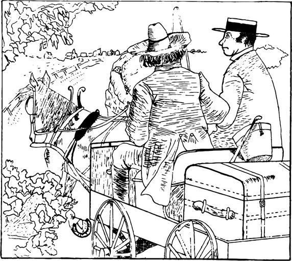 Keywords: vintage old old fashioned antique black black and white sketch drawing people person man male portrait men wagon cart horse transport journey travel luggage