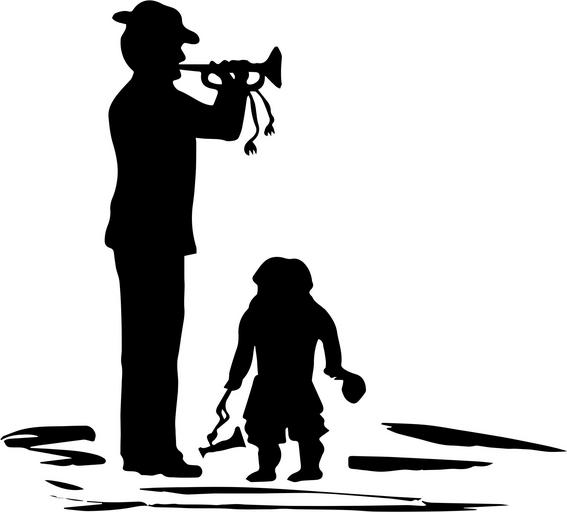 Keywords: vintage old old fashioned antique black black and white sketch drawing victorian retro people men male silhouette trumpet musical instrument music blow sound bugle