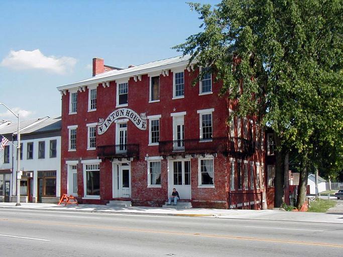 Keywords: VintonHouse CambridgeCityIN.jpg 91000787 Vinton House in Cambridge City Indiana An old inn this building's unique architecture is due to its relationship to the canal that once went through Cambridge City The right side of the building where the trees now grow is where the canal was The canal no longer exists but the interpretation of the building's architecture may tell the story of that once prosperous canal that helped the sustain the life of Cambridge City http //www fhwa dot gov/byways/photos/54391 2004-05-17 William Eccles 39 48 45 4 N 85 10 15 4 W region US-IN_heading 150 William Eccles National Register of Historic Places in Wayne County Indiana Cambridge City Indiana Brick houses in Indiana Red buildings in the United States |