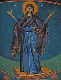 | Keywords: Virgin Orans, conch of apse.jpg mk Ф еска на Бого одица О анта конха на апсида во ц квата Св Бого одица Пе ивлепта во Ох ид акедонија en Fresco of Virgin Orans in conch of apse in Church of the Theotokos Peribleptos in Ohrid Macedonia http //www kalamus com mk/pdf_spisanija/patrimonium_2/006 20Spisanie 202008 20Zarov 2003 pdf По т ети и натписи во олта скиот п осто на Св Бого одица Пе ивлепта во Ох ид author 13 century PD-Macedonia Paintings in the Church of the Theotokos Peribleptos Orante |