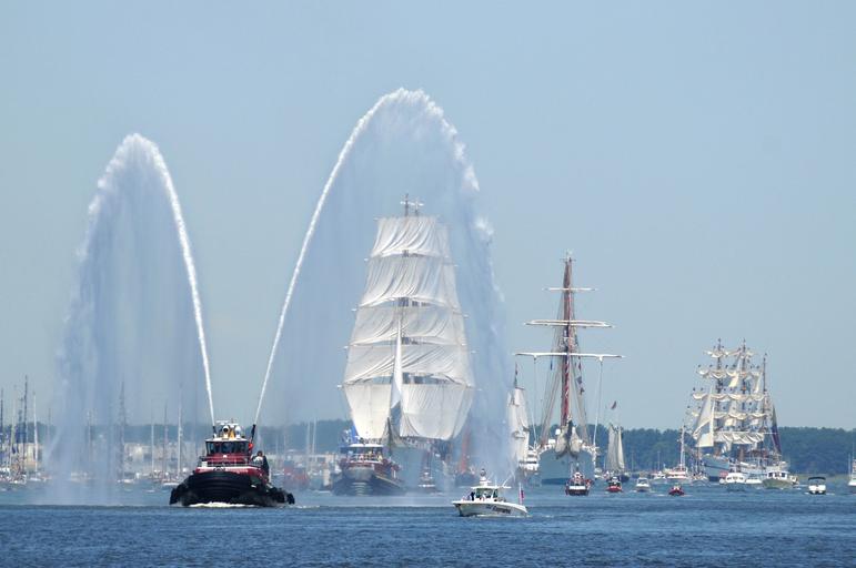 Keywords: virginia sky clouds harbor port river bay water ships fireboat spray spring summer beautiful nature outside
