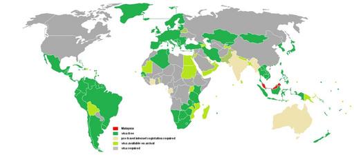 Keywords: Visa requirements for Malaysian citizens.PNG en Visa requirements for Malaysian citizens 2007-09-14 own User Noblesham Noblesham en Original upload log en wikipedia FtCG page en wikipedia MalaysiaVisaFree PNG wikitable - 18 42 4 March 2013 1 425 × 625 57 340 bytes bevis huang w en Not required Mexico Iraq - 18 42 11 January 2012 1 425 × 625 57 340 bytes Anggerik w en Visa required Ghana Gambia Not required Zambia On arrival Yemen North Korea - 12 25 27 March 2011 1 425 × 625 33 046 bytes Anggerik w en Visa required Senegal Zambia Not required Gambia Ghana On arrival Rwanda Bolivia - 07 46 21 February 2011 1 425 × 625 33 073 bytes Travelbird w en updates differentiate between visa-free visa-on-arrival - 14 06 25 February 2010 1 425 × 625 19 659 bytes Ozguroot w en +Sudan; VOA - 21 40 28 January 2010 1 425 × 625 19 633 bytes Ozguroot w en -Yemen - 01 04 24 January 2010 1 425 × 625 19 636 bytes Ozguroot w en - 23 49 23 January 2010 1 425 × 625 19 636 bytes Ozguroot w en Malaysia better color difference - 18 39 16 September 2009 1 425 × 625 32 953 bytes Anggerik w en Mexico - 08 58 24 June 2009 1 425 × 625 32 882 bytes Passportguy w en - 14 08 15 May 2009 1 425 × 625 33 036 bytes Passportguy w en update serval countries - 09 36 19 April 2009 1 425 × 625 33 005 bytes Passportguy w en add Montenegro visa free - 02 04 31 December 2008 1 425 × 625 33 022 bytes Rammsf w en Japan - visa required - 07 10 25 April 2008 1 425 × 625 32 979 bytes Noblesham w en Macedonia - visa free - 06 44 25 April 2008 1 425 × 625 33 003 bytes Noblesham w en Ethiopia - visa issued on arrival - 06 33 25 April 2008 1 425 × 625 32 976 bytes Noblesham w en Bangladesh - visa prior to arrival - 06 29 25 April 2008 1 425 × 625 33 048 bytes Noblesham w en Ecuador - visa free Dominican Republic - visa free Belarus - visa prior to arrival - 15 35 17 November 2007 1 425 × 625 32 992 bytes Noblesham w en - 15 32 17 November 2007 1 425 × 625 32 964 bytes Noblesham w en - 12 56 14 September 2007 1 425 × 625 32 958 bytes Noblesham w en - 12 51 14 September 2007 1 425 × 625 32 969 bytes Noblesham w en Maps showing visa requirements Malaysia |