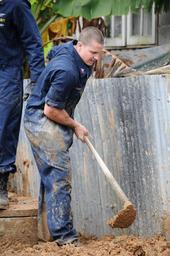 Keywords: Visiting Thailand DVIDS206987.jpg en Petty Officer 1st Class AW/SW Robert Venable aviation ordnanceman from the aircraft carrier USS Ronald Reagan packs dirt around a sewage tank during work for a Habitat for Humanity house in Thailand While in Thailand Sailors participated in community relations projects to foster good relations between the U S and Thailand The Ronald Reagan Carrier Strike Group is on a routine deployment in the 7th Fleet area of responsibility Operating in the Western Pacific and Indian Ocean the U S 7th Fleet is the largest of the forward-deployed U S fleets covering 52 million square miles with approximately 50 ships 120 aircraft and 20 000 Sailors and Marines assigned at any given time 2009-09-24 Petty Officer 3rd Class Chelsea Kennedy https //www dvidshub net/image/206987 090924-N-+++++-169 2009-09-28 04 55 PHUKET TH PD-USGov-Military-Navy USS Ronald Reagan CVN-76 humanitarian aid Images from DoD uploaded by Fæ |