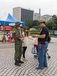 Keywords: Visitor Talking with Soldier Holded Boy 20140607.jpg zh-tw 中正 念堂廣場上,遊客與負責解說的陸軍士兵交談,穿迷彩 的孩子抱 士兵手上 2014-06-07 13 03 20 Own 玄史生 Republic of China Army Forces 90th Anniversary Military people and civilians Military people with children 玄史生写 文庫 Taken with Leica V-Lux 4 Uploaded with UploadWizard cc-zero |