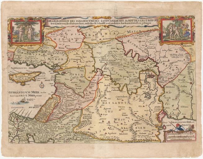 | Keywords: Visscher Die Gelegenheit Des Paradeis 1665 Cornell CUL PJM 2004 01.jpg Artwork Full TItle Die Gelegenheit Des Paradeis Und Des Lands Canaan Mit Sampt Den Erst Bewohnten Landeren Der Partriarchen Auss Der H Schrifft Und Anderen Auctoren Zusamen Getragen 1665 cm H x W 32 x 47 Institution Cornell University Library Division of Rare Manuscript Collections https //persuasivemaps library cornell edu/ Persuasive Cartography The PJ Mode Collection place of discovery object history exhibition history credit line See the Collector's Notes by selecting the i information button below http //www sscommons org/openlibrary/secure/ViewImages id 4jEkdDElLjUwRUY6fz5 2BRXpAOHcpel50dA 3D 3D userId gDFB zoomparams fs true the image here accession number 2004 01 place of creation https //persuasivemaps library cornell edu/ Cornell University Persuasive Cartography The PJ Mode Collection <br> From a German bible 1665 or later For full details see PJ Mode http //persuasivemaps library cornell edu/content/references References PD-old-100-1923 Cornell Persuasive Cartography The PJ Mode Collection 1665 maps Uploaded with UploadWizard Uploaded with UploadWizard Nicolaes Visscher I Pictorial maps German bibles |