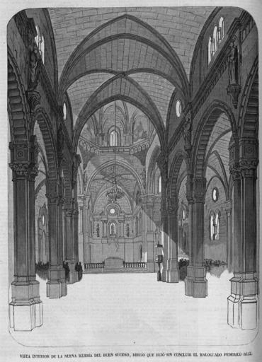 Keywords: Vista interior de la nueva iglesia del Buen Suceso, dibujo a medio concluir obra de Federico Ruiz.jpg El Museo Universal 1868 2 15 El Museo Universal Vista interior de la nueva iglesia del Buen Suceso dibujo que dejó sin concluir el malogrado Federico Ruiz 12 7 52 http //prensahistorica mcu es/es/catalogo_imagenes/grupo cmd interno S posicion 4 path 7147871 presentacion pagina date 1868 2 15 1889-8440 Dibujo Creator Federico Ruiz PD-Scan PD-old-auto-1923 1868 El Museo Universal Federico Ruiz Church of Nuestra Señora del Buen Suceso 1868 |