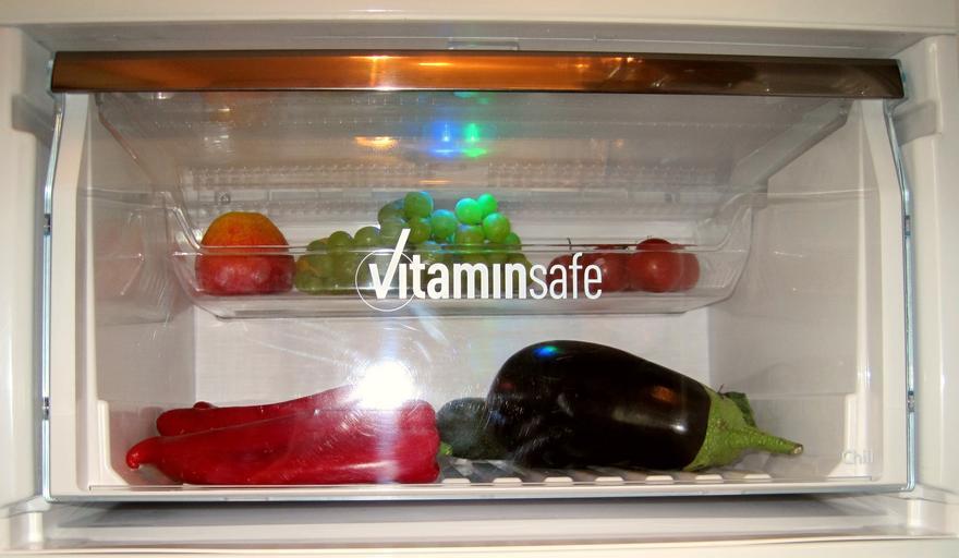 | Keywords: Vitaminsafe.jpg de Vitaminsafe Fach in Gefrierkombi für Obst und Gemüse mit LEDs die bei geschlossener Tür weiter leuchten hier zwei blinkende LEDs die den Blau- und Grünanteil des Sonnenlichts simulieren sollen Auf diese Weise sollen die natürlichen Schutzmechanismen von Ost und Gemüse aktiviert werden um dem Vitaminabbau der bei Lagerung im Dunkeln eintritt entgegenzuwirken Am Beispiel einer Panasonic Gefrier-Kombination own Kristina Walter 08 06 09 Domestic refrigerators | ||||