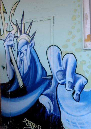 Keywords: Vitoria - Graffiti & Murals 0638.JPG en Graffiti en el barrio de San Martín de Vitoria-Gasteiz own Zarateman 2011-01-01 Cc-zero Graffiti in Vitoria-Gasteiz Graffiti of deities Neptunus deus Blue people in art