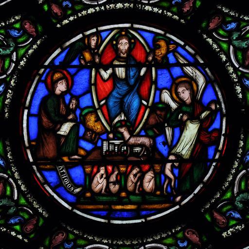 Keywords: Vitraux Saint-Denis 190110 31.jpg fr Vitrail de la Basilique Saint-Denis chapelle Saint Cucuphas Vitrail de l'Apocalypse Jean à Patmos Viollet-le-Duc et Alfred Gérente 1854 own Vassil 2010-01-31 Stained glass windows of Saint-Denis from Alfred Gérente The Apocalypse on stained glass windows Book of Revelation Saint John the Evangelist on Patmos Lambs on stained glass windows |