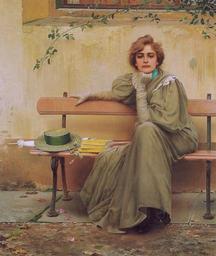 Keywords: Vittorio Matteo Corcos - Dreams - 1896.jpg Artwork Q16676215 Creator Vittorio Matteo Corcos LangSwitch La giovane donna effigiata è Elena Vecchi figlia di un amico del pittore Jack La Bolina pseudonimo di Augusto Vecchi ex ufficiale di Marina e scrittore di opere ispirate alla vita marinara del quale Corcos eseguì nel 1897 un ritratto a figura intera La giovane donna trascorse l'adolescenza presso la famiglia di Corcos al quale fu sentimentalmente legata The young lady is Elena Vecchi a friend's daughter La joven retratada es Elena Vecchi la hija de un amigo de Corcos 1896 oil on canvas cm 160 135 Institution Galleria Nazionale d'Arte Moderna accession number 154 credit line 1897 acquisto alla Esposizione della Società di Belle Arti di Firenze - Festa dell ™Arte e dei Fiori Galeria Nazionale d'Arte Moderna Rome other versions PD-old-auto 1933 Vittorio Matteo Corcos Paintings in the Galleria nazionale d'arte moderna Rome Corcos 1896 paintings 19th-century oil paintings of sitting women at full length Daydreams in art Females with walls in art Apathy Fashion in 1896 Heads resting Paintings of women sitting on outdoor benches Paintings of women with hats Sitting with arm resting Sitting with hand on head Women facing left in art Females with grey dresses in art |