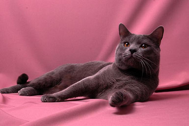 Keywords: Vladimir fev2006 007.jpg Vladimir du Parc Royal Chat Chartreux mâle appartenant à Elise de Guerny 2006-11-23 own assumed Elise deguerny~commonswiki Chartreux Cats on pink background Male cats Lying cats sideways