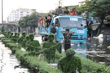 | Keywords: VOA - Thailand Grapples With Worst Flooding in 50 Years - 02.jpg en A resident evacuates flooded Bang Phlat walking along the street near the boat and oarsman of the Royal Barge Museum's topiaries Bangkok October 31 2011 VOA 2011-10-31 http //www voanews com/english/news/photo-galleries/132918503 html Thailand Grapples With Worst Flooding in 50 Years VOA News photo gallery October 31 2011 Voice of America PD-USGov-VOA Uploaded with UploadWizard 2011 Thailand floods Isuzu F-Series Blue trucks Vehicles in water |