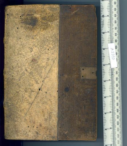 Keywords: Vocabularius praedicantium, sive Variloquus. -- - Upper cover (IA2390).jpg Style Diaper; Caption Upper cover; Colour White / cream; Edge Unspecified exhibition history Decorative Technique Tooled in blind; Cover Material Pigskin quarter Wooden boards Traces of 1 pair of clasps BMC I 163 No ms notes in book but ink ms parchment used as upper fly leaf Einbanddatenbank workshop number W002276 tools S015312 S015686 object history Text 1500 ; Unspecified; Unspecified object type Cc-zero place of creation Binding Germany place of discovery BMC I 163 British Library image http //www bl uk/catalogues/bookbindings/LargeImage aspx RecordId 020-000012308 ImageId ImageId 45759 Copyright BL Vocabularius praedicantium sive Variloquus Uploaded with GWToolset Vocabularius praedicantium sive Variloquus - Upper cover IA2390 http //www webarchive org uk/bldatasets/bindings/13285_3 jpg Bookbinding 15th-century bookbinding |