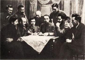 | Keywords: Voenka.jpg en Military Organization of the Bolshevik Party ru Военная о ганизация п и ЦК РСДРП б Сидят слева нап аво К О лов К А ехоношин В И евский И Подвойский П В Дашкевич Ф Ф Раскольников; стоят Б Занько С Кед ов В Л Панюшкин А И Та асов-Родионов А П ена оков 1917 К аткая исто ия документы фотог афии 1988 Author 1917 PD-old Bolsheviks Alexander Tarasov-Rodionov Nikolay Ilyich Podvoisky | ||||